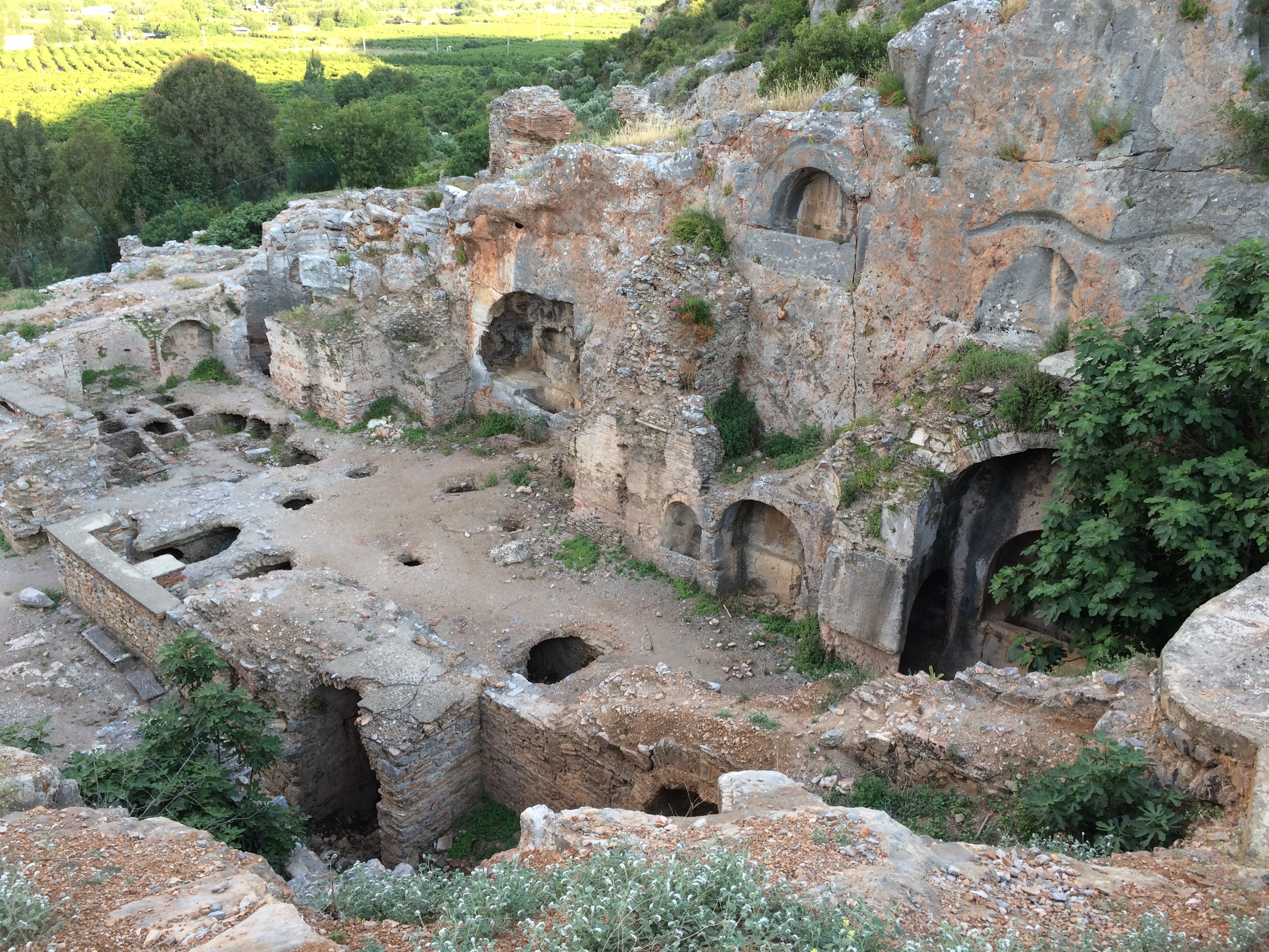 Bir süre daha ilerledikten sonra Yedi Uyuyanlar’a varıyoruz. Hikayeye göre İmparator Decius zamanında putperestlerin zulmünden korkan yedi Hıristiyan genci Panayır Dağı eteklerindeki bir mağaraya sığınırlar ve 200 yıl süren derin bir uykudan uyandıktan sonra Theodosius II. zamanında Hıristiyanlığın resmi din olarak kabul edildiğini öğrenirler. Bu mucizevi olaydan ötürü mukaddes kişiler olarak kabul edilen yedi genç öldükten sonra işte bu mağaraya gömülürler. Daha sonrada bölge kutsal kabul edildiğinden bu çevreye gömülme geleneği devam eder. Yedi Uyunlar ziyaretimiz sırasında gözleme ve ayran ile enerji alıp turumuza devam etmek üzere pedala basıyoruz.