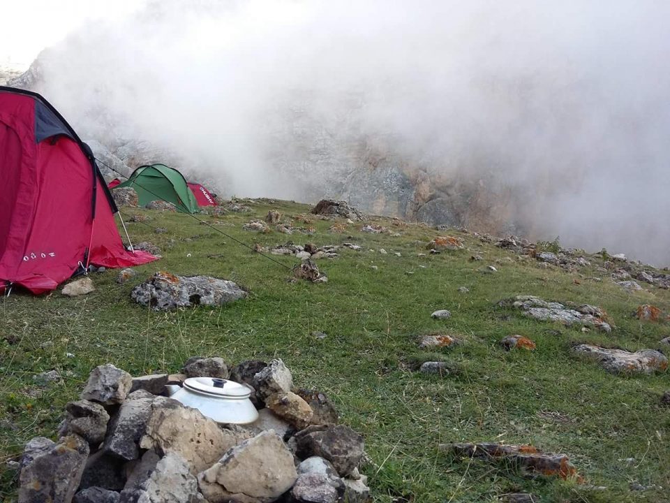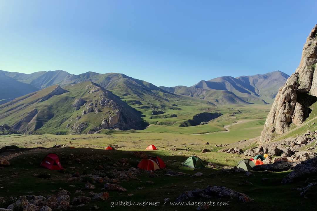 Ay, konuklarına yardımcı olmak için Kızılkaya’nın tepesinden göründü görünecek. Herkeste bir çadır kurma telaşı. Çadırını kuranlar, o yorgunluk sonrası, yemek bile yiyemeden tulumlarına gömülüp kusursuz bir uyku çekmek için çadırlarına girdiler, kimisi ise hala çadır kuracağı yerin taşlarını ayıklamakla meşgul. Hiçkimsede ses yok. Ben sıcak suda anında yumuşayan bir makarna yaptım ama suyu kaynatmak bir saatimi aldı. Rakım 2550 metre idi. Yemeğimi bitirir bitirmez çadırıma girdim. Vahap abi de yemek yemeden uykuya dalanlardı. Benim geldiğimi fark etmedi bile. Tulumuma girer girmez uyumuşum. Ertesi günü boş gün yapmıştık. Sabah 9 sularında uyandım. Aladağların kayalık vadilerine benzeyen bir vadide kamp atmışız demek ki. Manzara harikaydı. Makinamı aldım. Güzel birkaç fotoğraf çektim. Güneş henüz çadırlarımıza ulaşamamıştı. Kamp yerimizin yan tarafından gürül gürül bir dere akıyordu. Dereye küçük bir keşif yürüyüşü yaptım. Ellerimi, kollarımı, bacaklarımı, boynumu buz sularla yıkadım. Bütün yorgunluğum, Şahdağ’ın bu çelik gibi sularında akıp gitmişti. Geri döndüğümde birkaç kişi daha uyanmıştı. Çadırdan dışarıya kafasını uzatan herkes, doğanın bakirliğine, güzelliğine “iyi ki buradayım” diye bakıyordu.