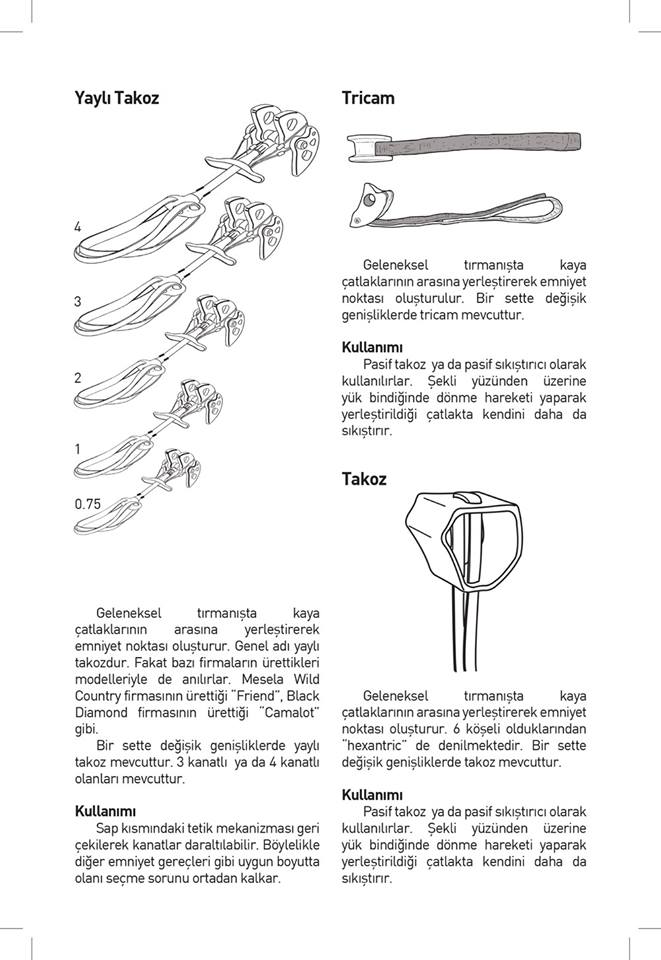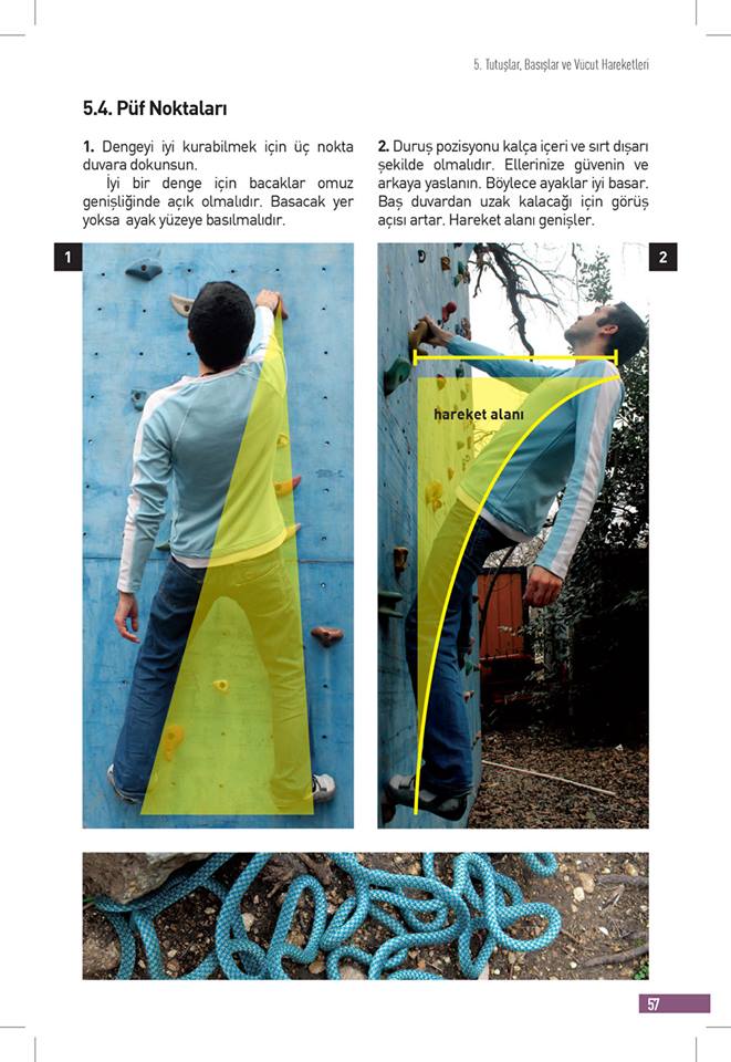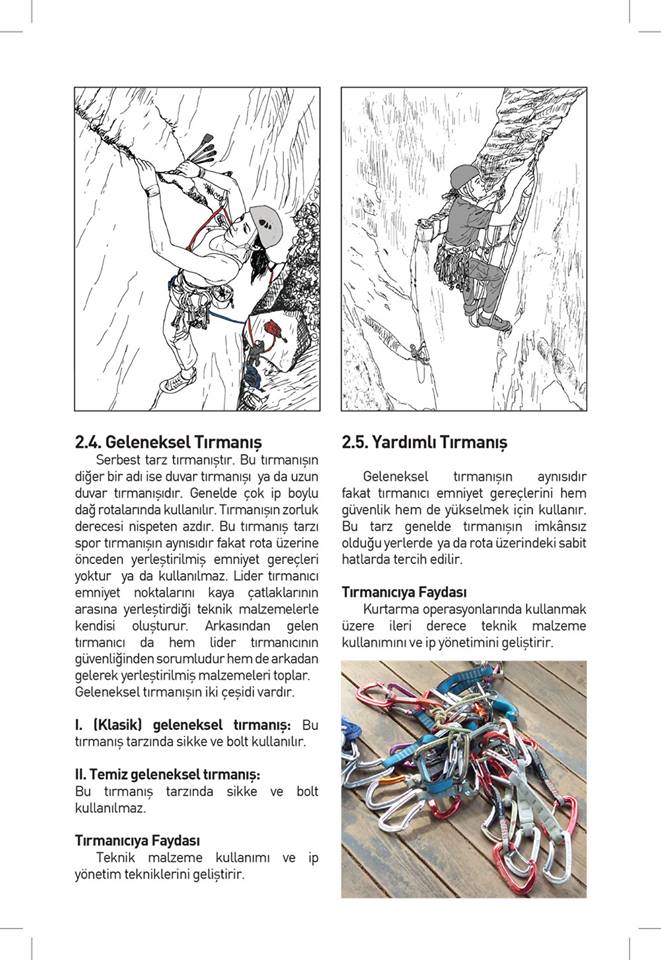 Kitapta spor tırmanış, geleneksel tırmanış ve kısa-kaya tırmanış hakkında temel bilgi, beceri ve teknikler anlatılmakta.